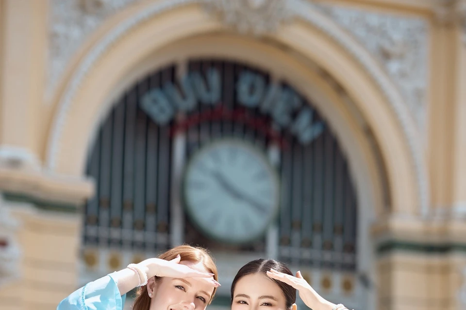 “Hỏi thăm nhau xong là chúng tôi nhanh chóng bắt đầu hành trình khám phá Sài Gòn. Hai chị em cùng diện áo dài và đội nón lá, ghé thăm Bưu điện Trung tâm xong rồi dạo một vòng quanh Chợ Bến Thành náo nhiệt. Lúc nào cũng vậy, được khoe với bạn bè quốc tế những nét ‘xịn sò’ của quê hương là điều tôi luôn tự hào,” Hoa hậu Ý Nhi chia sẻ.