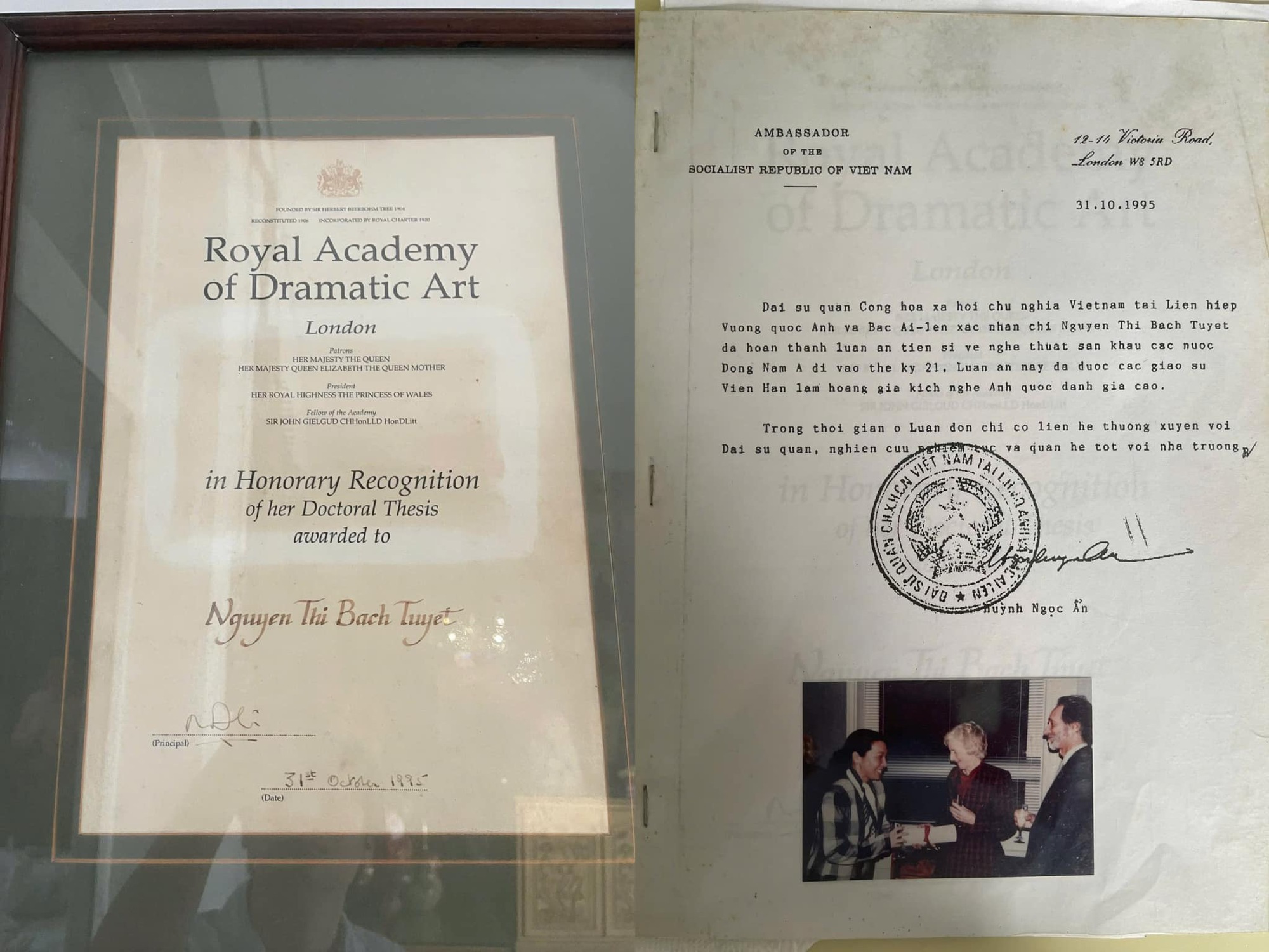 Trong thông tin gửi chúng tôi, đại diện NSND Bạch Tuyết cho biết từ năm 1991 đến 1995, nữ nghệ sĩ được chấp thuận vào học tại Royal Academy of Dramatic Art. Tháng 10.1995, giọng ca cải lương bảo vệ luận án Sự thích nghi của nghệ thuật sân khấu dân tộc cổ truyền của các quốc gia Đông Nam Á.