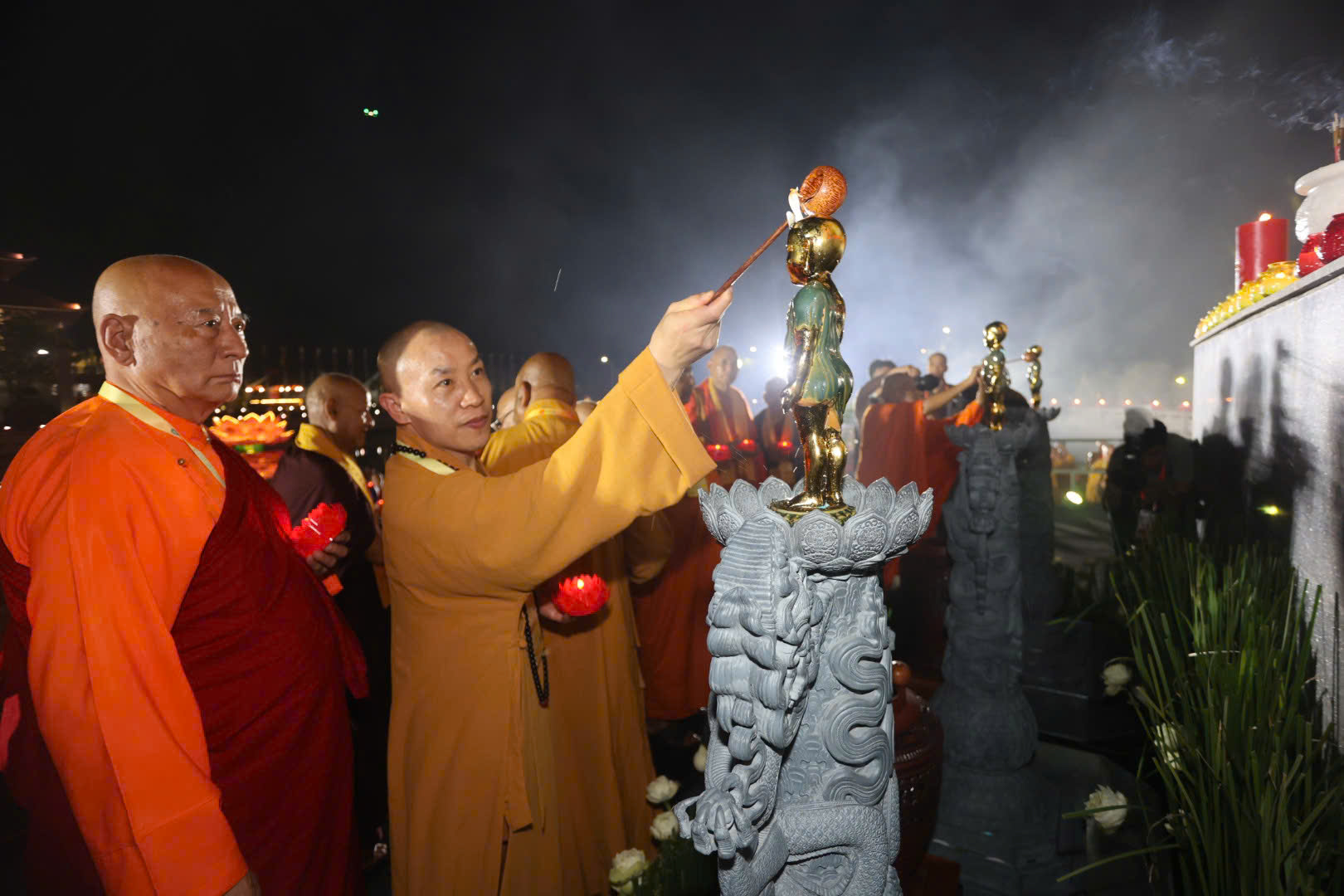 Đại biểu thực hiện nghi thức mộc dục Đức Phật