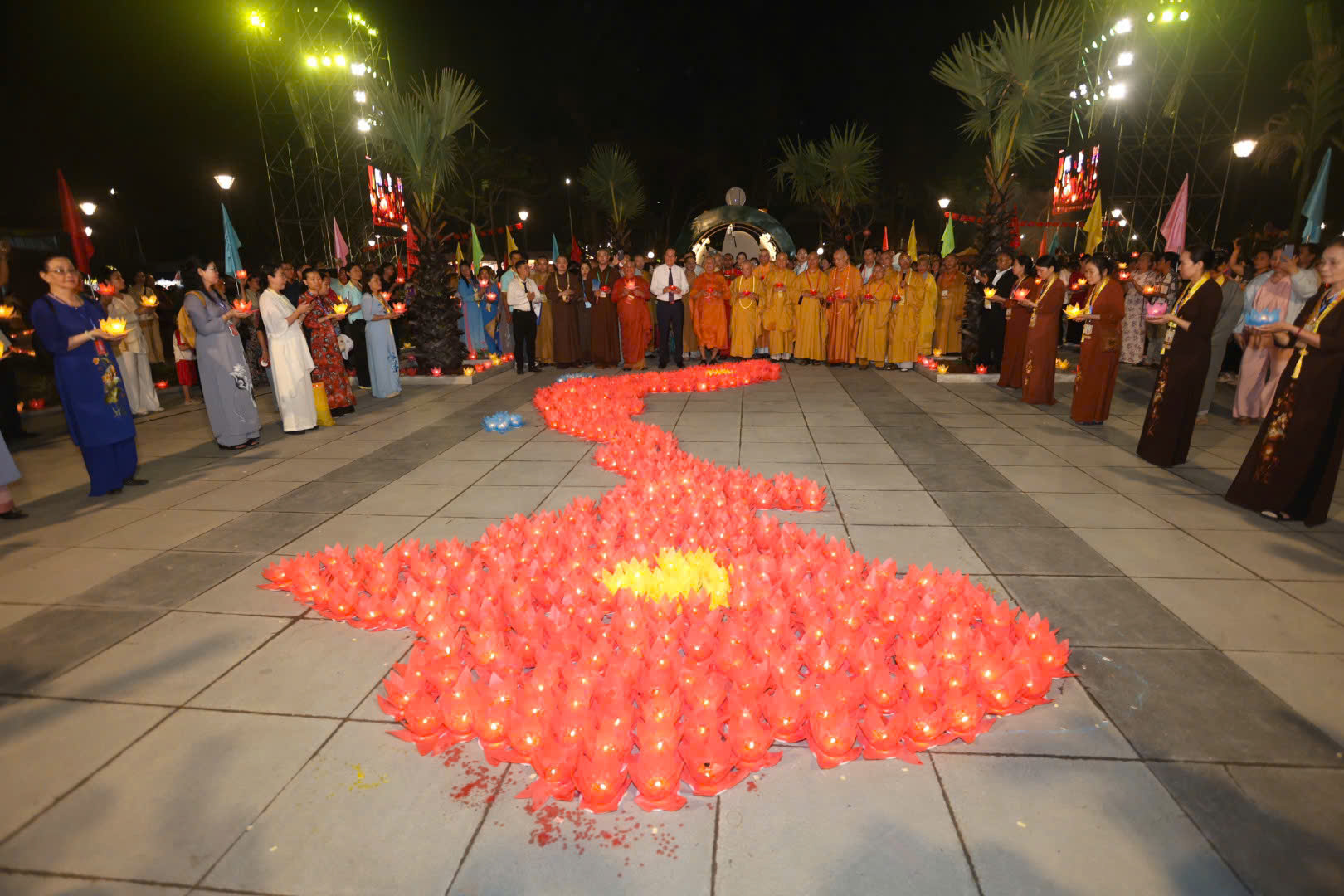 Tối 6-5, Lễ thả hoa đăng cầu nguyện hòa bình đã diễn ra trang trọng tại Công viên Văn hóa Láng Le (huyện Bình Chánh, TP HCM), thu hút khoảng 12.000 người tham dự. Sự kiện nằm trong khuôn khổ Đại lễ Vesak Liên hợp quốc 2025.