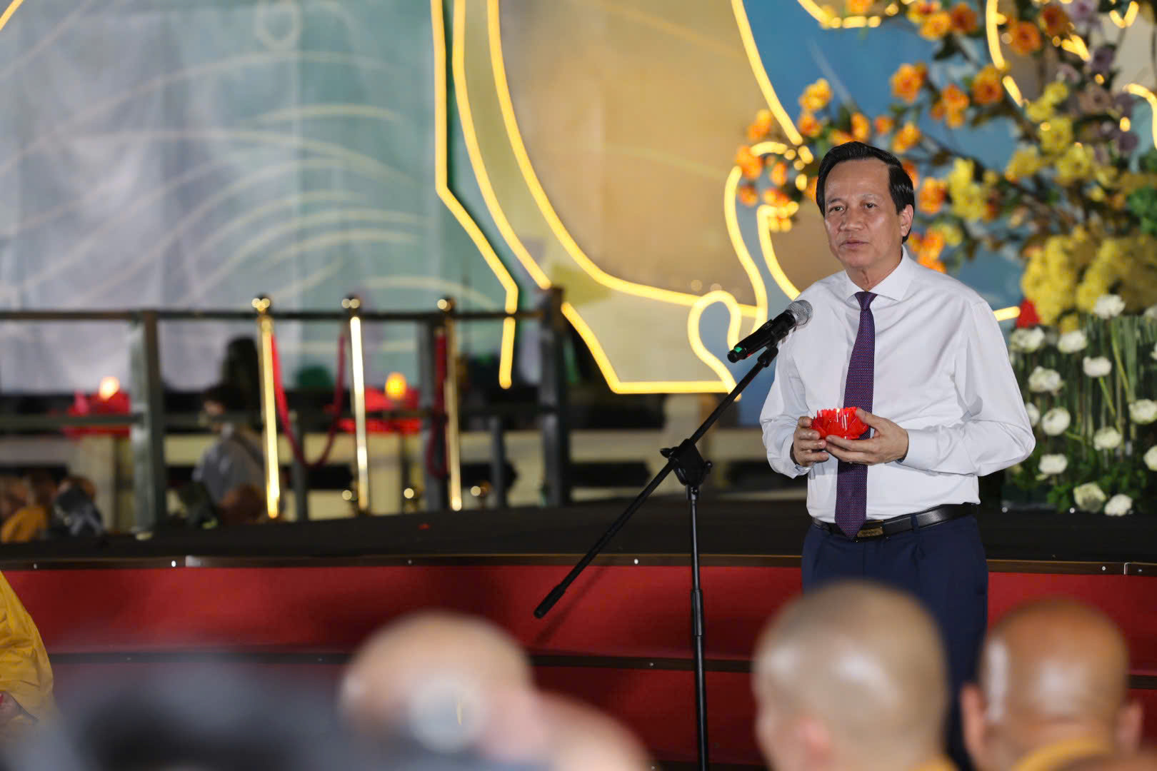 Phát biểu tại buổi lễ, ông Đào Ngọc Dung, Bộ trưởng Bộ Dân tộc và Tôn giáo, bày tỏ niềm xúc động và vinh dự khi được tham dự một nghi lễ thiêng liêng, thấm đẫm tinh thần từ bi và khát vọng hòa bình.
